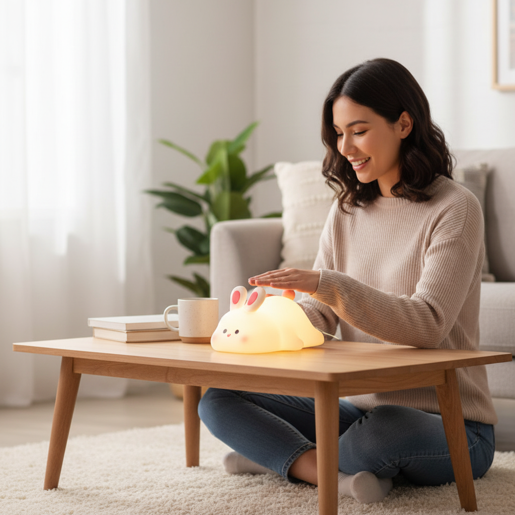 Offrez sécurité et douceur avec cette veilleuse lapin tactile. Son design adorable et sa lumière apaisante créent l'ambiance parfaite.